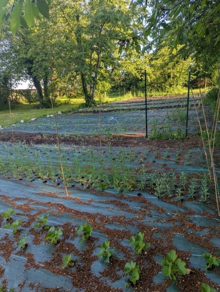 La ferme est pensée selon les principes de l’agroécologie et du bio-intensif : une production sur très petite surface, sans engrais de synthèse, où chaque parcelle est cultivée à la main. Ici, pas de grosses machines, on s’adapte et on accompagne le vivant plutôt que de le contraindre.